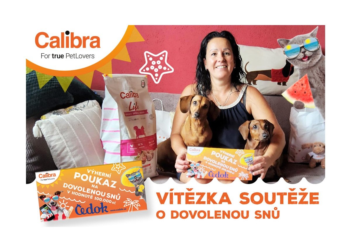 Štěstí se tentokrát usmálo na paní Miloslavu ze Sokolova, hrdou majitelku dvou čtyřnohých parťaček – fenek Katty a Mii, které si dlouhodobě pochutnávají na Calibře. Právě ona si díky naší hlavní výhře může užít dovolenou snů v hodnotě 100 000 Kč a odnést si zážitky, na které se nezapomíná.